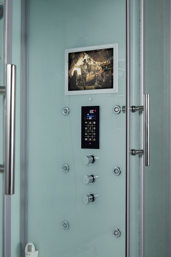 The Catania computerized Steam Shower Massage Bathtub comes with a built in Heater Pump, 27 Whirlpool Massage Jets, 6 Acupuncture Massage Jets, 12″ Smart TV, Phone, Bluetooth. Plus 10 Year Warranty!