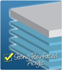 Reinforcement – To cut costs many factories use a composite material, combining ABS on the inside with acrylic PMMA sheets on the outside.
